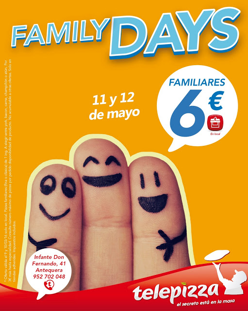 11 y 12 Family Days en Telepizza con pizzas familiares por 6€ Última actualización 11 de mayo de 2016 00:00 admin Compartir Compartir Comparte este artículo Facebook Copiar link Imprimir No hay comentarios Deja una respuesta Cancelar la respuestaTu dirección de correo electrónico no será publicada. Los campos obligatorios están marcados con *Comentario * Nombre * Correo electrónico * Web Guarda mi nombre, correo electrónico y web en este navegador para la próxima vez que comente. Últimas noticias Antequera hace entrega de los premios del Concurso Municipal de Belenes ‘Manuel Grau’ 24 de diciembre de 2025 Entregados los premios del Concurso de Christmas en las Pedanías de Antequera 2025 23 de diciembre de 2025 Dcoop refuerza su compromiso con la reducción de emisiones en toda su actividad 23 de diciembre de 2025 Juan de Dios Mora, ganador del cheque de 3.000 euros por comprar en el comercio local de Antequera 23 de diciembre de 2025 Archidona premia la excelencia en la tradición y el comercio en sus concursos de Navidad 23 de diciembre de 2025 Lo más leido Antequera hace entrega de los premios del Concurso Municipal de Belenes ‘Manuel Grau’ 24 de diciembre de 2025 Entregados los premios del Concurso de Christmas en las Pedanías de Antequera 2025 23 de diciembre de 2025 Dcoop refuerza su compromiso con la reducción de emisiones en toda su actividad 23 de diciembre de 2025 Juan de Dios Mora, ganador del cheque de 3.000 euros por comprar en el comercio local de Antequera 23 de diciembre de 2025 Archidona premia la excelencia en la tradición y el comercio en sus concursos de Navidad 23 de diciembre de 2025 Síguenos 304.9KMe gusta3MSeguir304.9KPin844.9MSeguir40.5MSuscribirse39.5KSeguir
