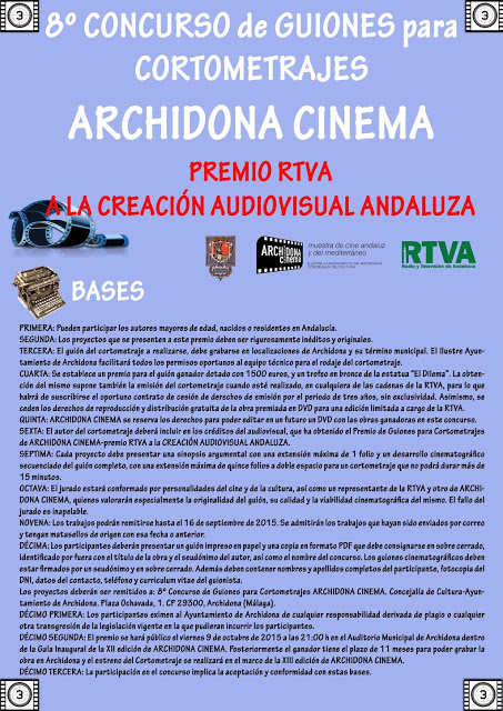 Un año más llega el ‘Concurso de Guiones para Cortometrajes Archidona Cinema’. En ésta, su octava edición, se entregará el Prermio RTVA a la creación audiovisual andaluza.