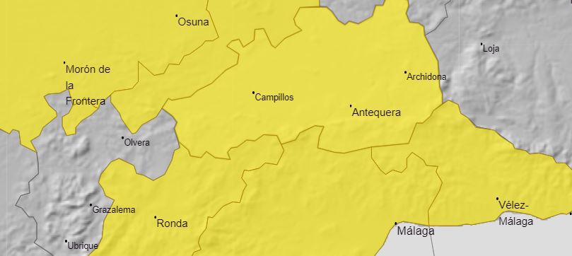 Las AEMET ha activado la alerta amarilla por tormentas en la zona de Antequera desde esta medianoche. Los avisos se mantendrán activos desde las 00:00 hasta las 08:59 de mañana.