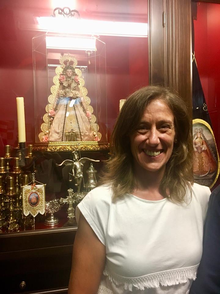 ADRIANA MEJÍAS DÍAZ (1970), natural de Antequera. Es la menor de cuatro hermanos de una familia muy conocida en Antequera por regentar el que fuese conocido como Bazar Mejías. La raíz rociera le viene mucho antes de iniciarse el camino de la Hermandad, ya que su madre, es manriqueña de nacimiento, hecho que hizo acunar la devoción y senti