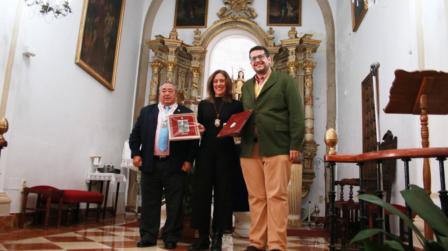La pregonera (c), junto con el Hermano Mayor (d) y el vice hermano mayor (i).
