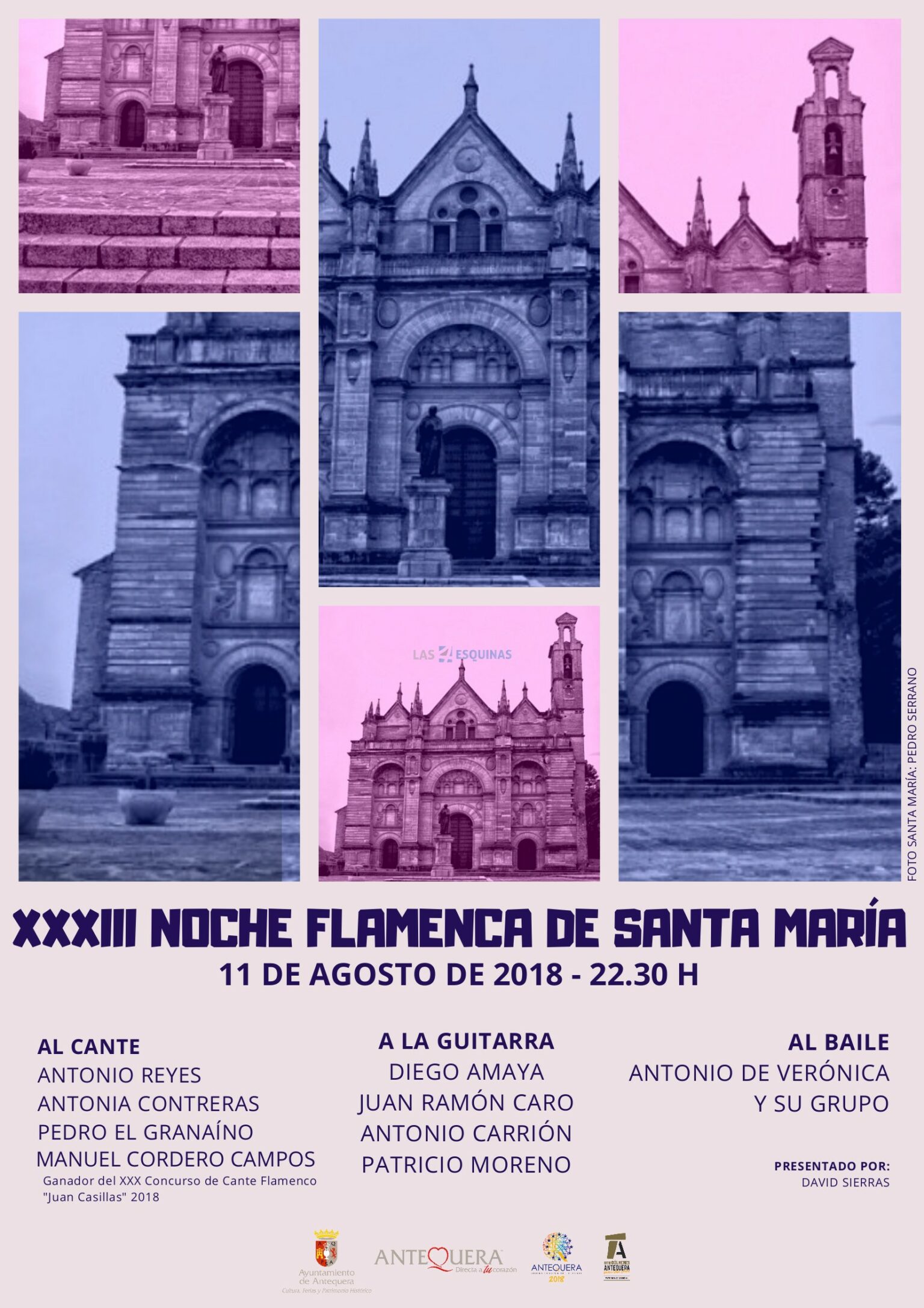 22.30 33ª Noche Flamenca de Santa María. Al cante: Pedro ‘El granaino’, Antonio Reyes, Antonia Contreras y Manuel Cordero. Al toque: Diego Amaya, Juan Ramón Caro, Antonio Carrión y Patricio Moreno. Al baile: Antonio de Verónica y su grupo. Plaza de los Escribanos.