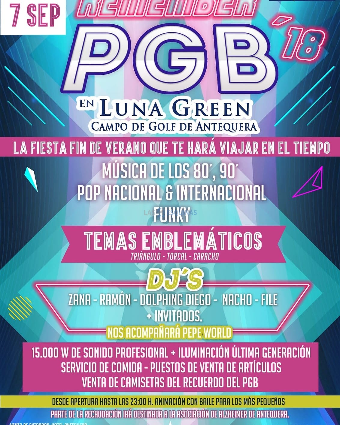 22.30 Fiesta Remember PGB en Luna Green. A beneficio de la Asociación de Alzheimer de Antequera.