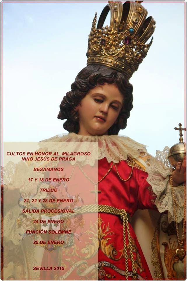– A las 17:30 h, Procesión del Niño Jesús de Praga, desde la Iglesia del Santo Ángel y acompañado por la AM Sta María Magdalena de Arahal, que se estrena tras el Niño