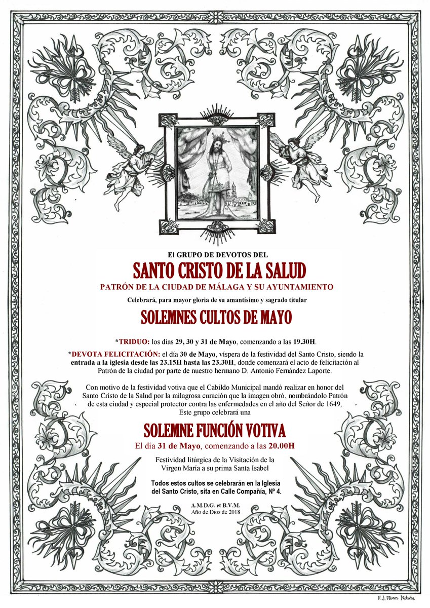 19.30 Triduo al Santo Cristo de la Salud. Iglesia del Santo Cristo de la Salud, Pza. Constitución.