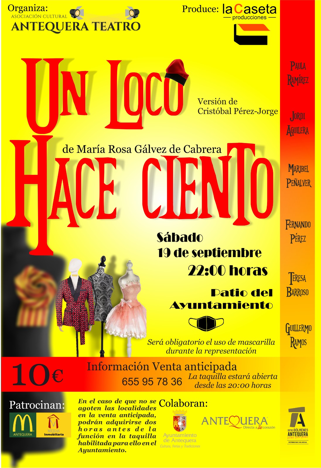 22.00 Teatro «Un loco hace ciento». Patio del Ayuntamiento. Precio de las entradas, 10 euros. A cargo de La Caseta Producciones.