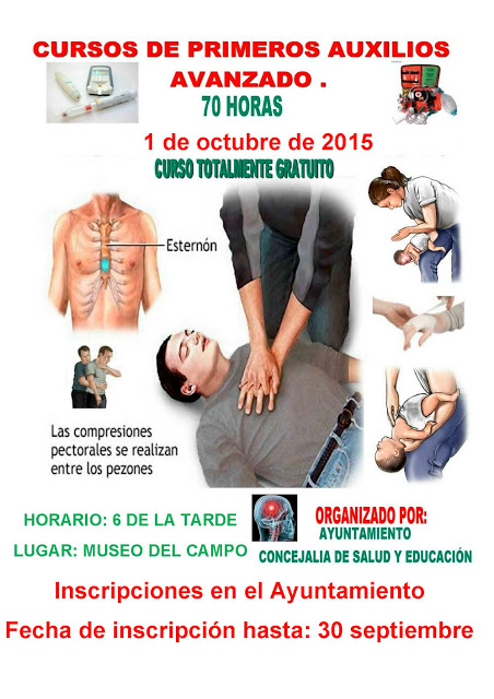 El ayuntamiento de Alameda oferta para el mes de octubre un curso de primeros auxilios avanzados. Las clases comienzan en próximo día 1 de octubre, y el plaza está abierto hasta el día 30 de septiembre para inscribirse. Las inscripciones se deben hacer en el ayuntamiento.