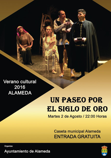 La Caseta Municipal de Alameda acoge a las diez de la noche la Representación Teatral «Un Paseo por el Siglo de Oro». La entrada a dicho acto será gratuita.