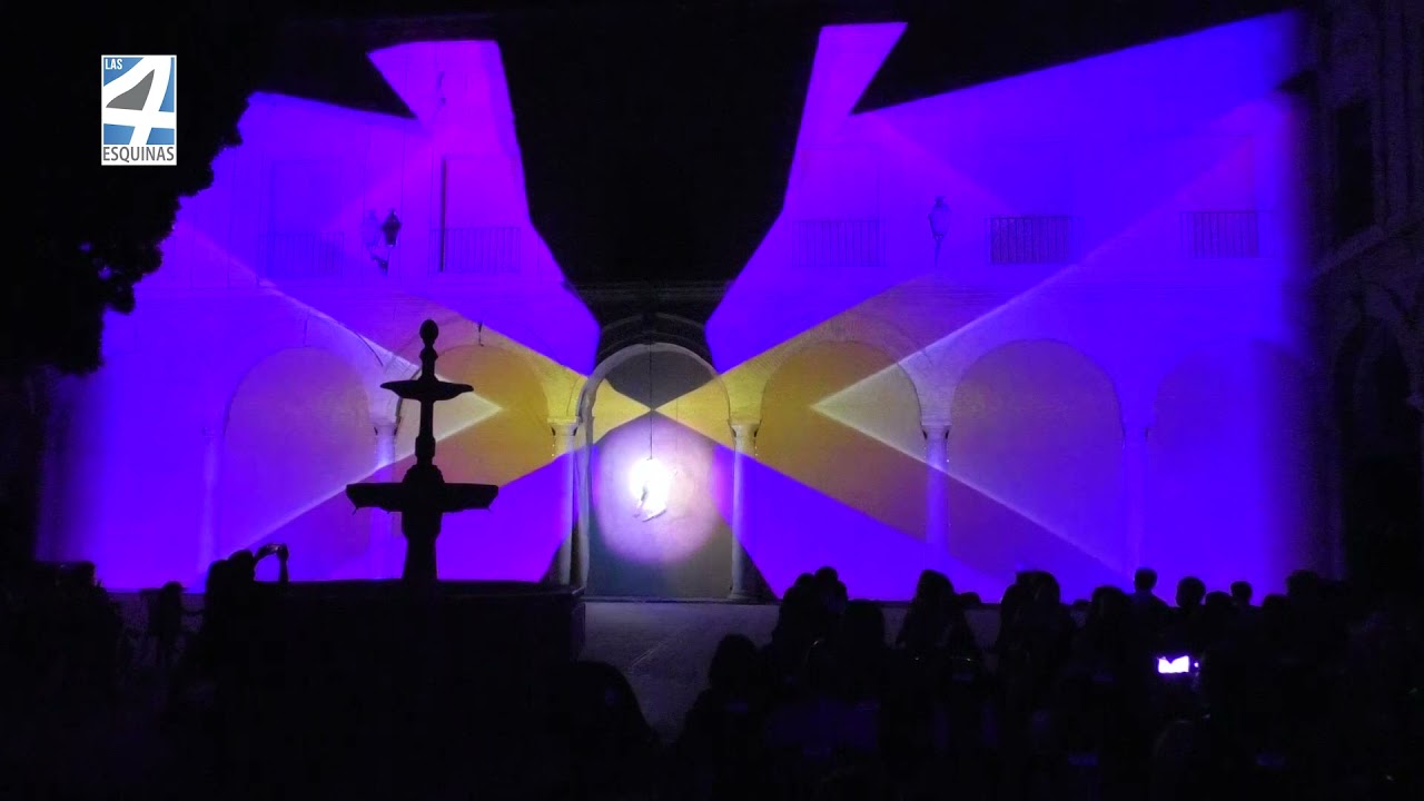 El patio de columnas del Ayuntamiento de Antequera nos transporta a otra dimensión con un videomaping inmersivo de luz y color acompañado de artistas y bailarinas profesionales realizando danza vertical.