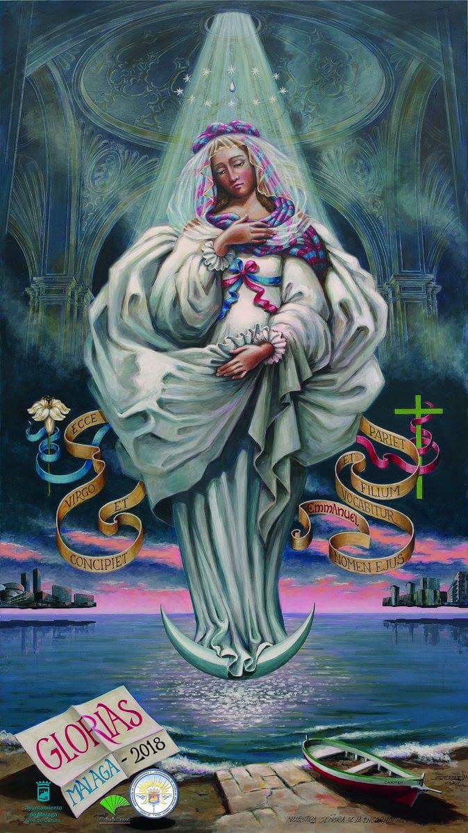 El artista ha querido recrear en un entorno idealizado y etéreo una escena que representa el momento de la Encarnación del Hijo de Dios, punto de inflexion entre el Antiguo y Nuevo Testamento, una cúpula etérea que tiene como protagonista al primer templo de la diocesis, la Catedral de Málaga, simbolizando el Antiguo Testamento y un paisaje idealizado con una jábega en la playa y edificios de vanguardia suspendidos simbolizando el Nuevo Testamento y la eternidad.