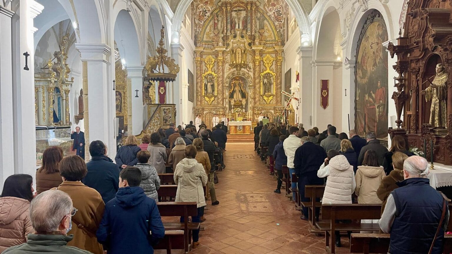 A las once de la mañana se abrían las puertas de San Francisco para recibir las primeras visitas. Pasadas la una de la tarde, daba comienzo la eucaristía en su honor, siendo esta presidida por nuestro consiliario el Rvdo. Padre Francisco Baquero Vargas, acompañado por el nuevo cuerpo de acólitos de la cofradía.