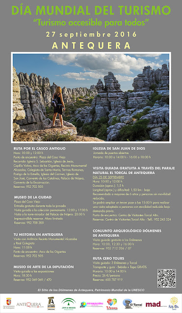 El Ayuntamiento de Antequera ha preparado un completo programa de actividades a desarrollar en varios enclaves monunmentales y naturales. Este año el lema sobre el que se desarrolla esta celebración es ‘Turismo accesible para todos’.