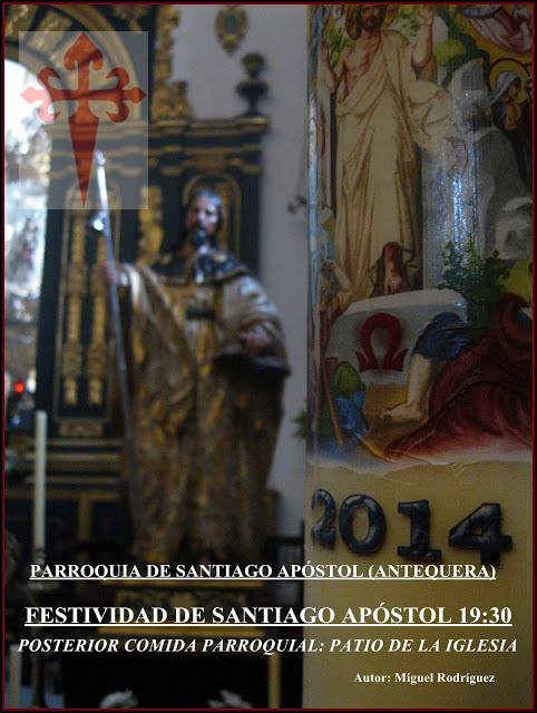 Varios locales del barrio, ciertas iglesias y en determinadas zonas comerciales ya anuncian la Festividad del Apostol Santiago, Patrón de España, este próximo sábado en Antequera.