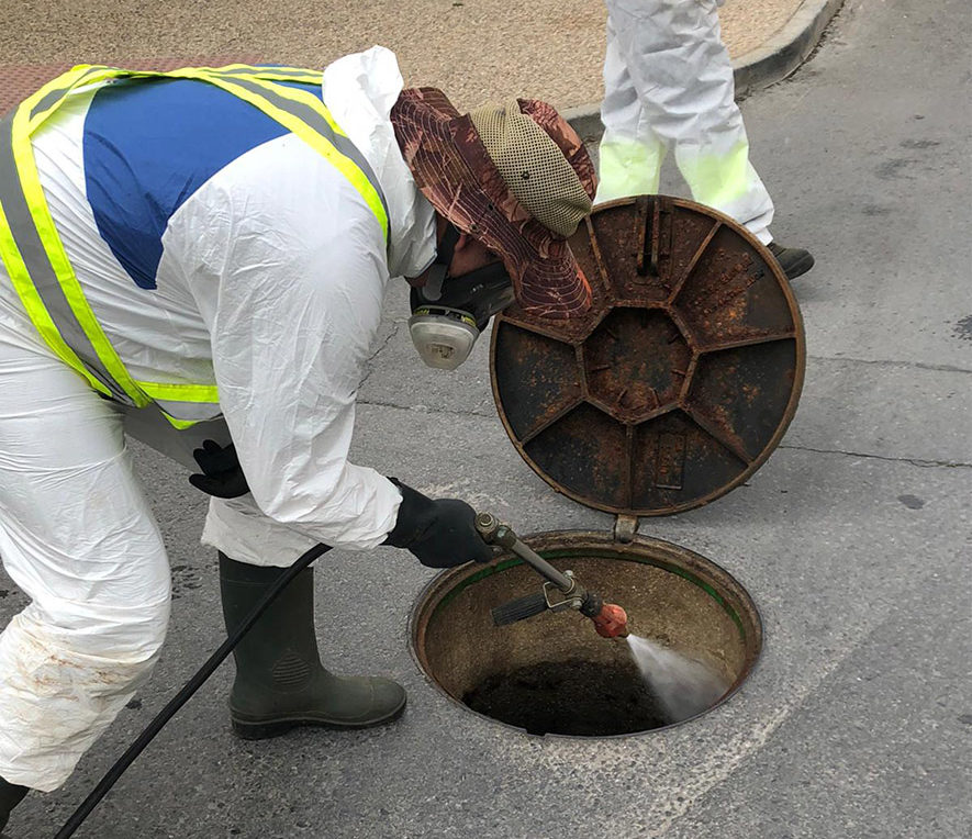 Actualmente, los trabajos se están llevando a cabo por una empresa especializada a registros y arquetas existentes en la vía pública que vienen a ser accesos a la red de saneamiento subterránea.