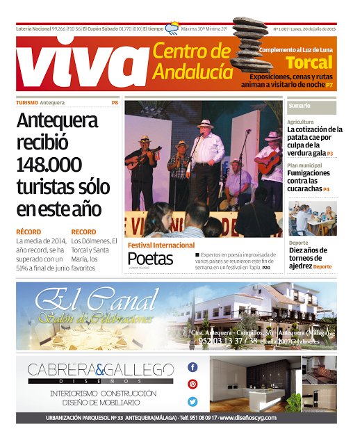 [DESCARGAR] Antequera supera su media de turistas en 2015 y las imágenes del encuentro internacional de poetas de improvisación en Tapia, en el Viva Centro de Andalucía del 20 de julio de 2015