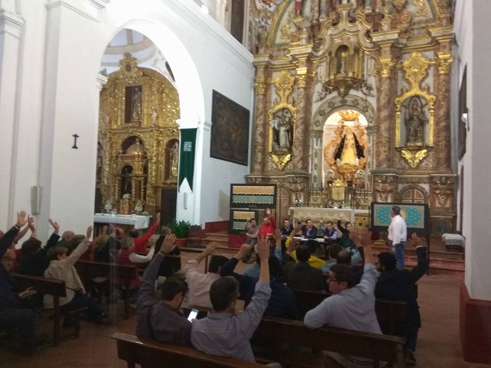 En la noche del pasado viernes 12 de Mayo, y como estaba previsto, se celebró Cabildo Extraordinario en el que se presentó para su aprobación el proyecto de bordado para el palio del trono de Nuestra Señora de la Vera-Cruz.