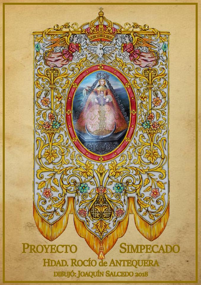 La Hermandad de Nuestra Señora del Rocío de Antequera ha presentado y aprobado en Junta General Extraordinaria de 26 de enero de 2018, por unanimidad, el diseño y presupuesto de ejecución del nuevo Simpecado de la Hermandad, diseñado por el bordador D. Joaquín Salcedo Canca, y que será el principal proyecto patrimonial de esta Corporación para los próximos años.