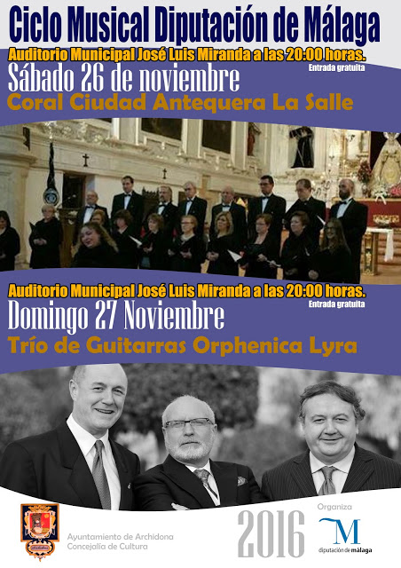 Este programa copará la atención cultural el último fin de semana del mes en Archidona, comenzará con la “Coral Ciudad de Antequera la Salle”, fundada en 1991 con la dirección de Antonio Jiménez Palomo, en la noche del Sábado 26 a las 20:00 horas con entrada gratuita.