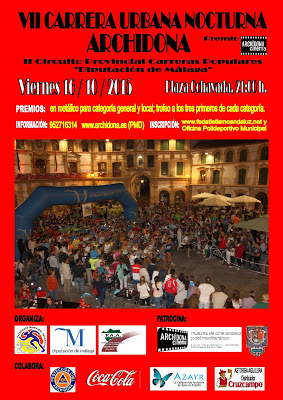 El Patronato Municipal Deportivo de Archidona organiza la Carrera Urbana Nocturna ‘Premio Archidona Cinema’ el día 16 de octubre de 2015, a partir de las 21.00 horas, con salida y meta en la Plaza Ochavad.