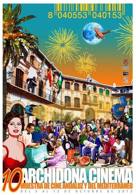 Los autores, integrantes de la Factoría Pláxtica han querido pregonar a través del arte el evento cultural con un cuadro que representa la Plaza Ochavada de Archidona bañada por las aguas del mar Mediterráneo. Lleno de colorido y dentro de un concepto barroco, en la imagen podemos ver una reunión de artistas e iconos del mundo del cine en un ambiente cálido donde destaca un bodegón que mezcla bombonas de butano y sandías.