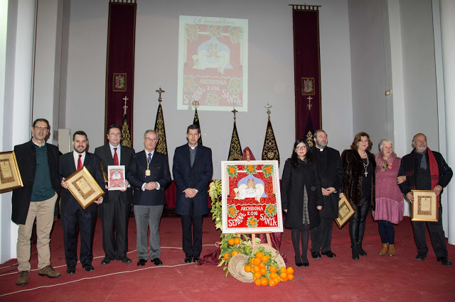 La artista archidonesa Dña. María Ortiz Nuevo presentó su obra titulada ‘Las cuatro estaciones’ realizada en cerámica, que será el cartel oficial de la Semana Santa de Archidona 2016. Con su particular forma de ser, argumentó los infinitos matices en los que se ha inspirado para pintar “el angelito”- tal y como ella misma citó- y la composición cromática con la que ha querido realizar su obra. “Espero que este cartel cumpla con el fin último que persigue el arte, belleza y amor a quien lo contempla”- citó al término de su exposición. Antonio Navarro agradeció a la familia Ortiz, el legado y compromiso con Archidona y recordó la estrecha amistad que le une con José Luis Ortiz desde hace años.
