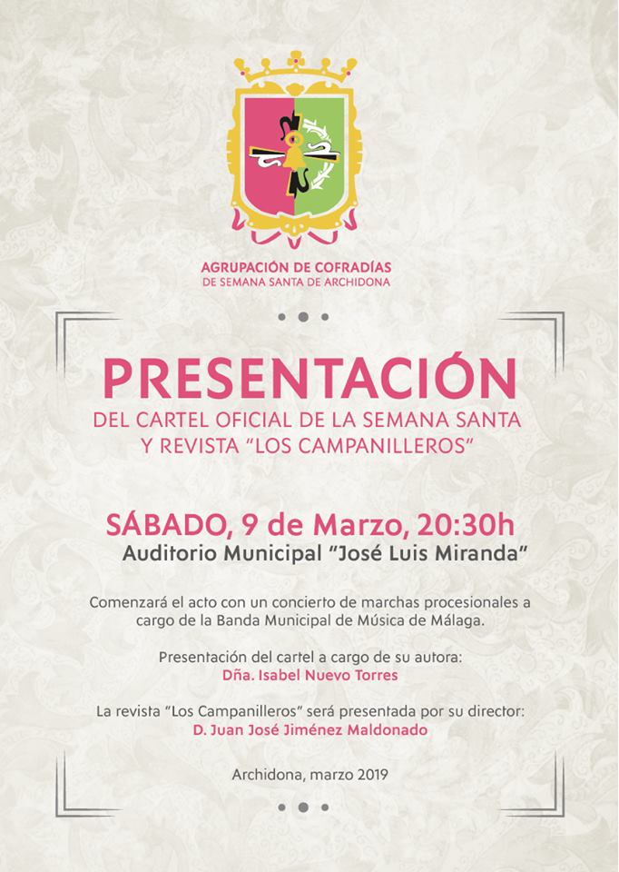 La Agrupación de Cofradías de Semana Santa de Archidona organiza la Presentación de Cartel Oficial de la Semana Santa y revista «Los Campanilleros» 2019.