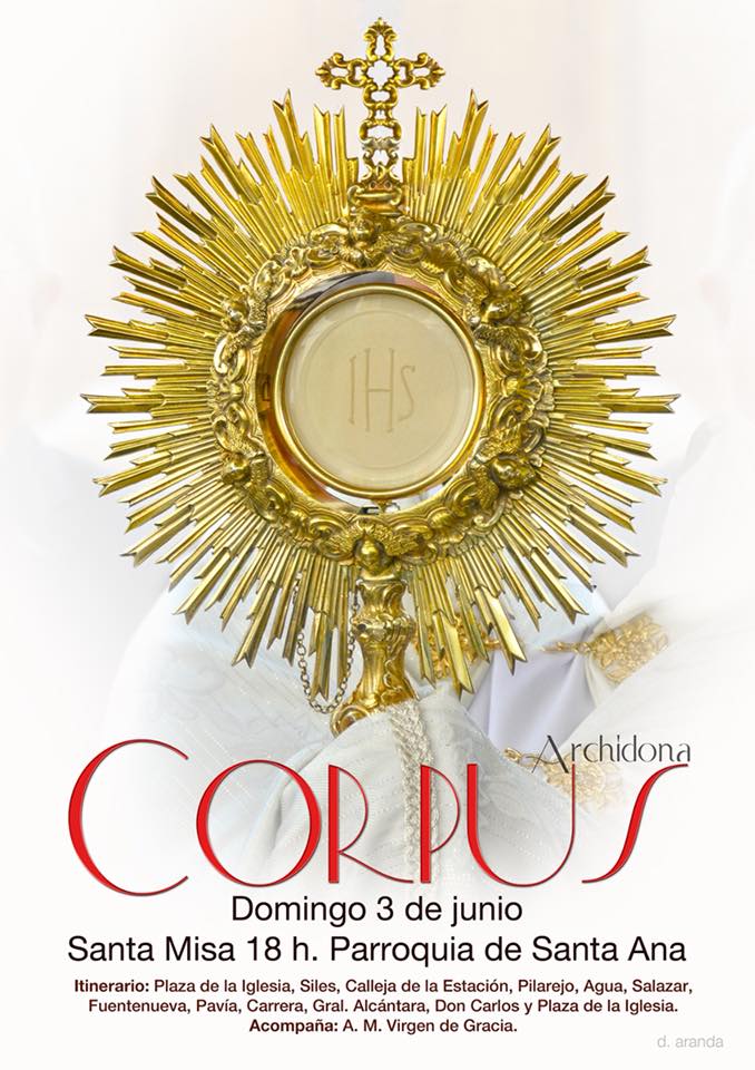 La celebración religiosa tendrá lugar en la Iglesia Parroquial de Santa Ana, y desde allí el Santísimo Sacramento saldrá en procesión, en torno a las 18.30 horas, por la Plaza de la Iglesia,  Siles, Calleja de la Estación, Pilarejo, Agua, Salazar, Fuentenueva, Pavía, Carrera, General Alcántara, Don Carlos y Plaza de la Iglesia.