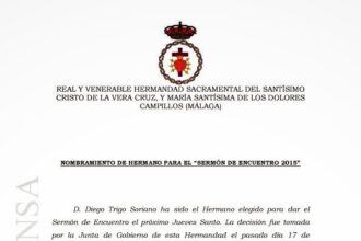 Diego Trigo realizará el Sermón del Encuentro el Jueves Santo de 2015 en Campillos