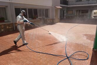 Aguas del Torcal realiza labores de limpieza y desinfección intensivas en el exterior de los centros educativos de Antequera y anejos