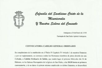 La Cofradía del Consuelo de Antequera convoca Cabildo de Salida el Miércoles de Ceniza