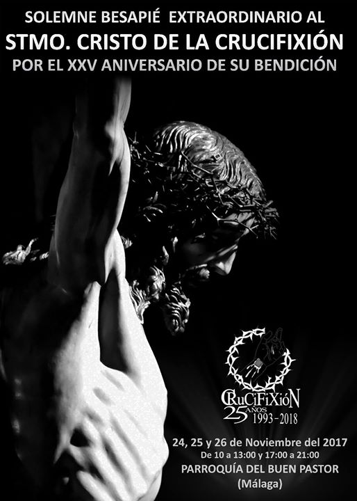 Besapie extraordinario al Cristo de Crucifixión durante viernes, sábado y domingo en Parroquia del Buen Pastor de 10.00 a 14 y de 17.00 a 21.00 horas.