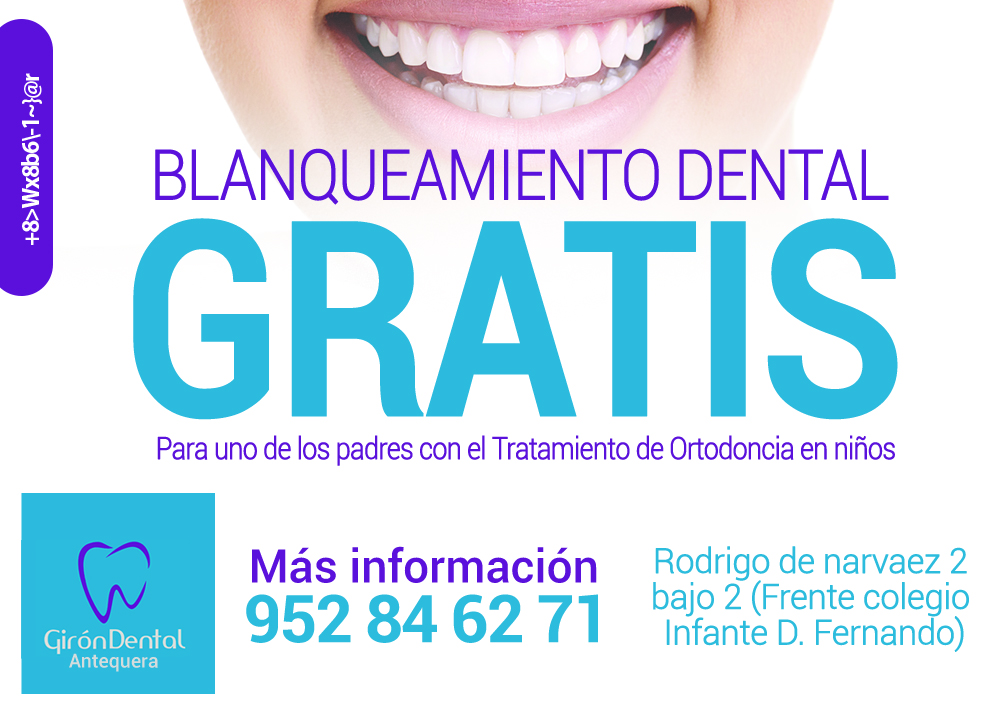 Girón Dental ofrece a los clientes que se presente con este cupón un blanqueamiento dental gratis para uno de los padres de un niño que se haga un tratamiento de Ortodoncia.