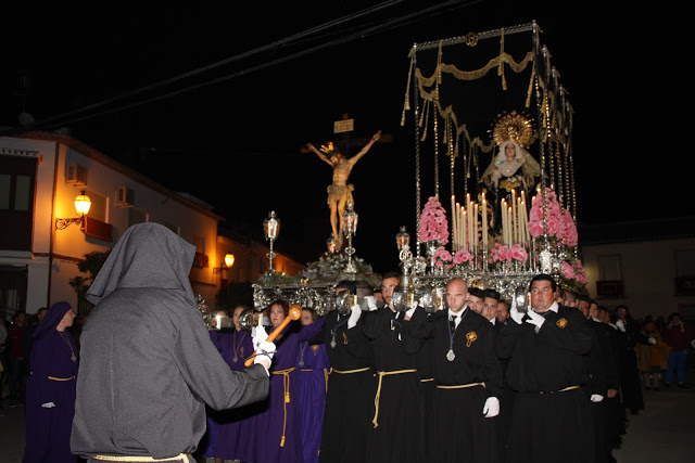 Anoche Bobadilla Estación estrenó la Semana Santa con la salida de la Virgen de los Dolores y el Cristo de las Almas en el Viernes Dolores. A las ocho de la noche inició su salida desde la Plaza de los Dolores y acompañado por más de una decena de niños que estrenaban sección infantil y por una cuarentena de mantillas que custodiaban al Cristo.