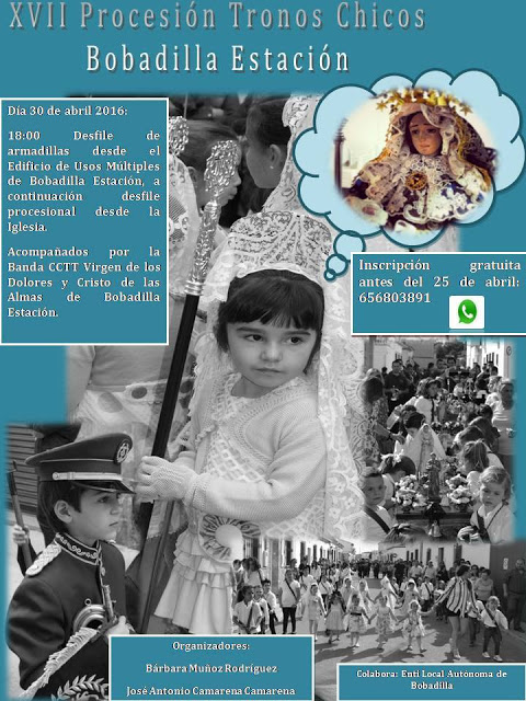 Este próximo sábado tendrá lugar la decimoséptima edición de la procesión de tronos chicos de Bobadilla Estación.