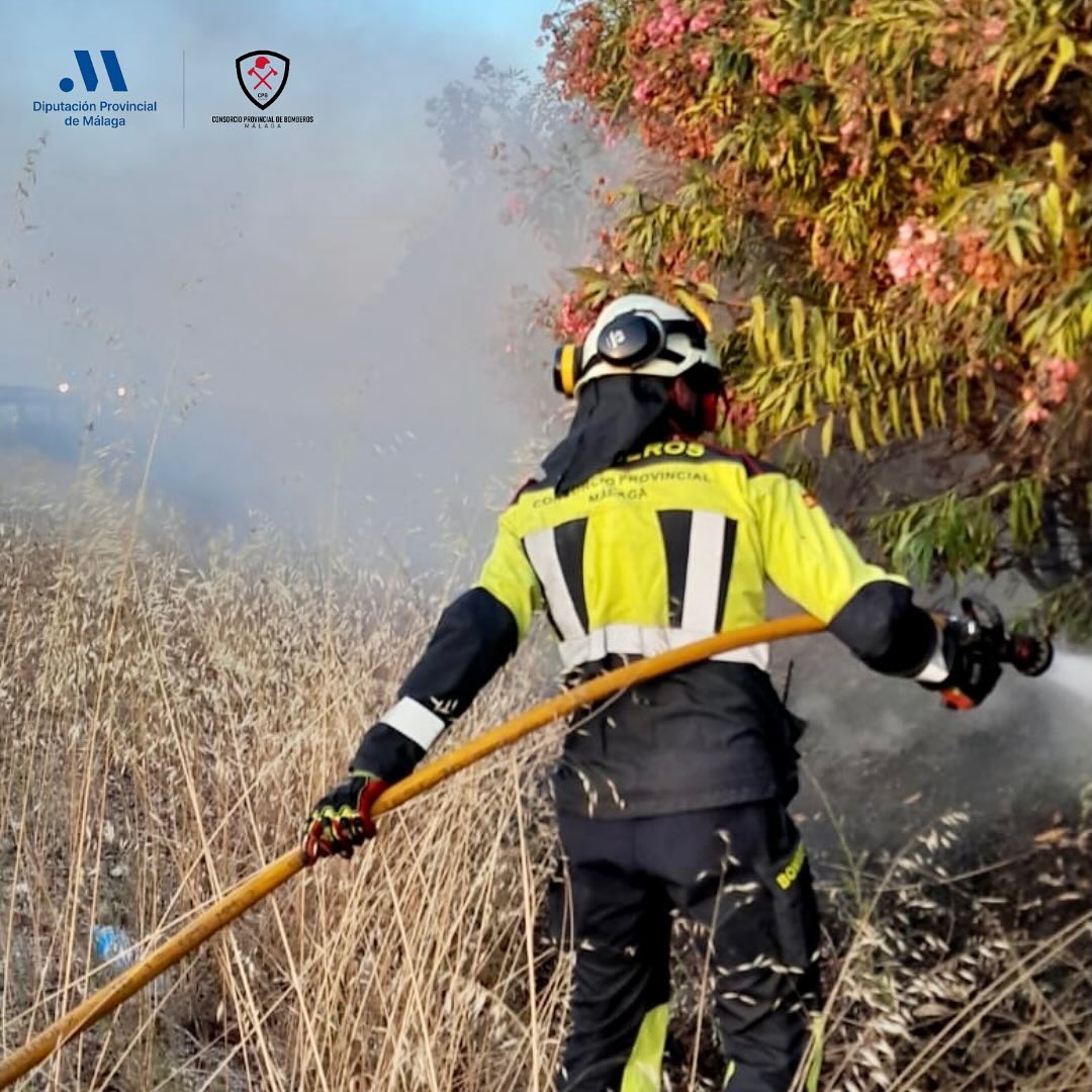 Efectivos del Consorcio Provincial de Bomberos de Málaga han intervenido en un incendio que ha tenido lugar en la A-92M, Km.12, en  el municipio de Villanueva del Trabuco.