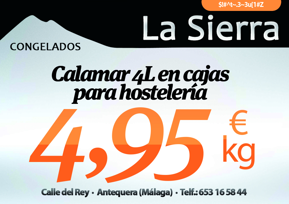 Congelados La Sierra ofrece a sus clientes una gran variedad de pescados frescos y productos congelados, como este calamar 4L en cajas para hostelería por 4,95 €/kg.
