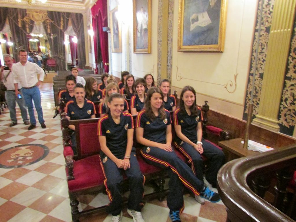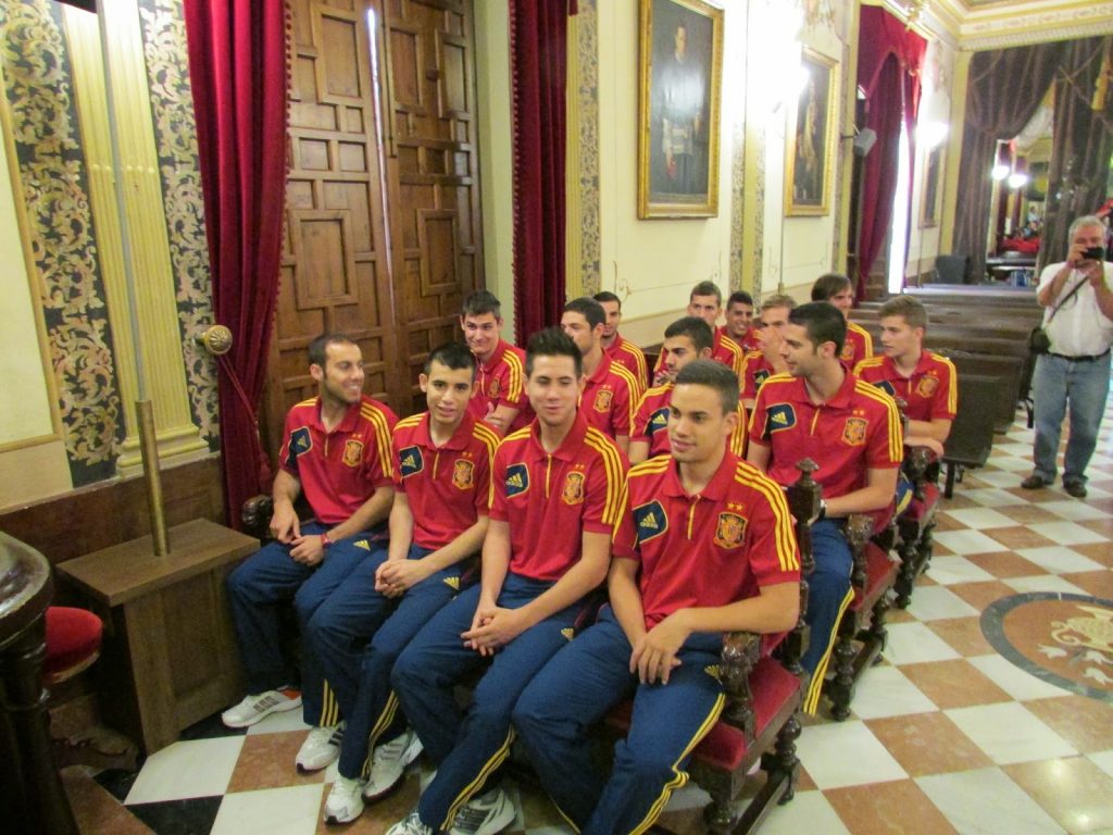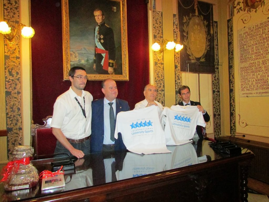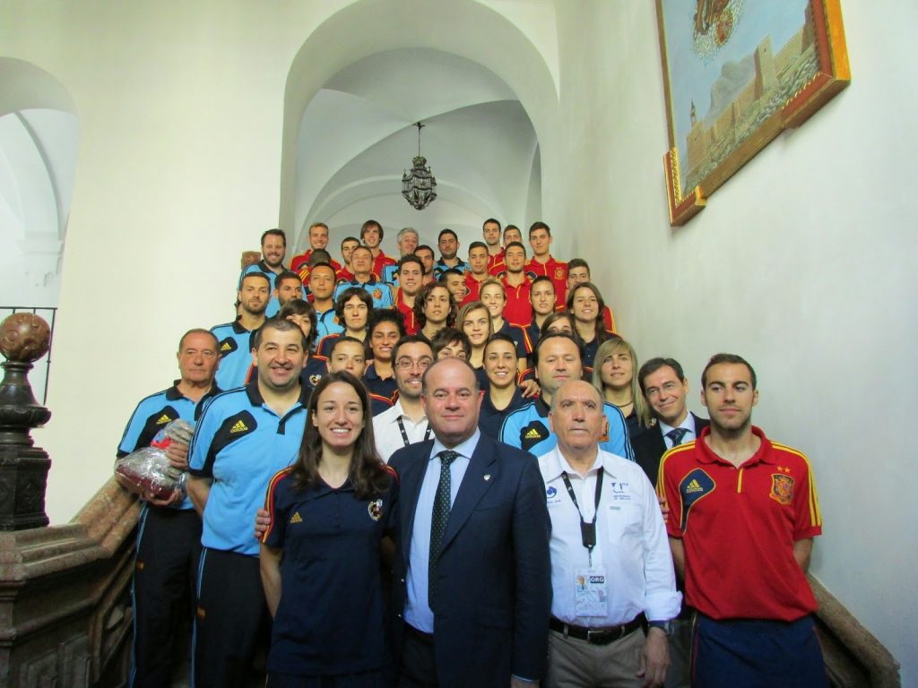 El Ayuntamiento de Antequera ha querido dar un recibimiento a las selecciones españolas de fútbol sala a su llegado a la ciudad del torcal. En el acto estuvieron el alcalde, Manuel Barón, la concejal de patrimonio y juventud, Eugenia Acedo, el concejal de deportes, Alberto Vallespín, así como un representante de la FISU, representantes técnicos de los equipos y un representante de la universidad, así como las dos selecciones españolas de fútbol sala, tanto masculina como femenina.
