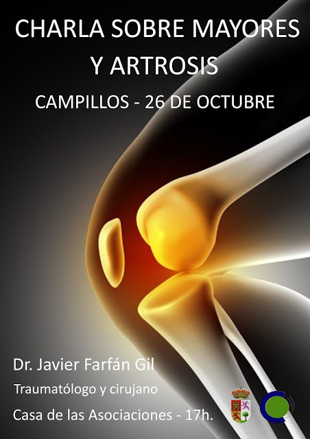 La concejalía de Derechos Sociales del Ayuntamiento de Campillos ha organizado una charla informativa sobre la artrosis, dirigida fundamentalmente a las personas mayores de la localidad, aunque estará abierta a toda la ciudadanía. Esta especie de conferencia correrá a cargo del doctor Javier Farfán Gil, traumatólogo y cirujano del Hospital de Antequera, y tendrá lugar el próximo 26 de octubre, a las 17:00 horas, en la Casa de las Asociaciones de Campillos.
