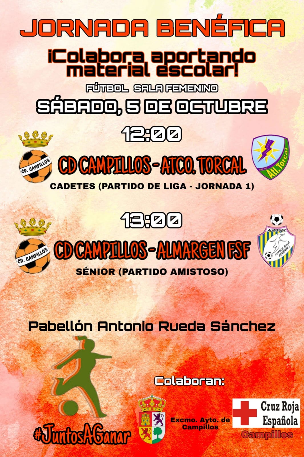 La sección femenina del CD Campillos ha organizado una jornada a beneficio de Cruz Roja Campillos. Esta iniciativa cuenta con la colaboración de la Concejalía de Deportes del Ayuntamiento de Campillos y se llevará a cabo este sábado 5 de octubre, a partir de las doce de la mañana, en el pabellón polideportivo municipal ‘Antonio Rueda Sánchez’.