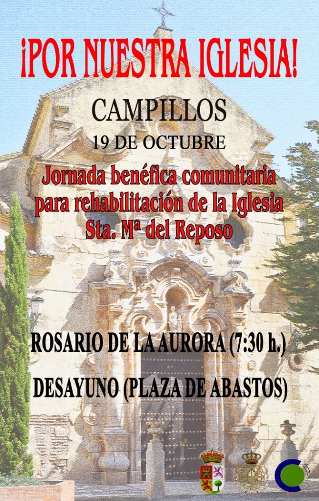La jornada dará comienzo a las siete y media de la mañana con un Rosario de la Aurora que partirá desde la propia iglesia y recorrerá diversas calles del municipio. Tras el mismo, tendrá lugar un desayuno en la Plaza de Abastos de Campillos. Todo lo recaudado en dicho desayuno será destinado a la rehabilitación de la Iglesia Santa María del Reposo.