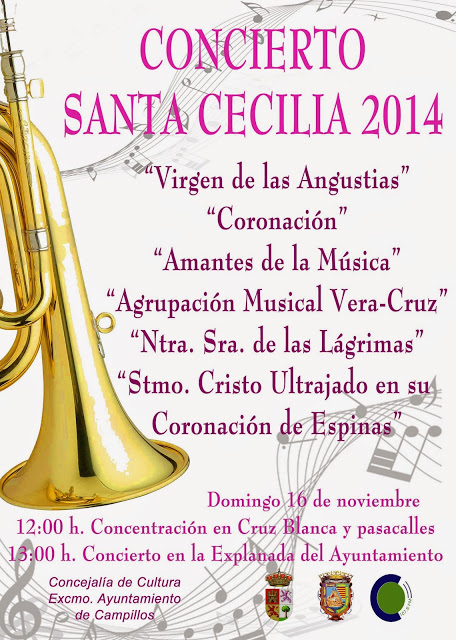El municipio malagueño de Campillos celebrará este domingo 16 de noviembre un concierto conmemorativo del día de Santa Cecilia, patrona de la música, que tiene lugar cada 22 de noviembre.