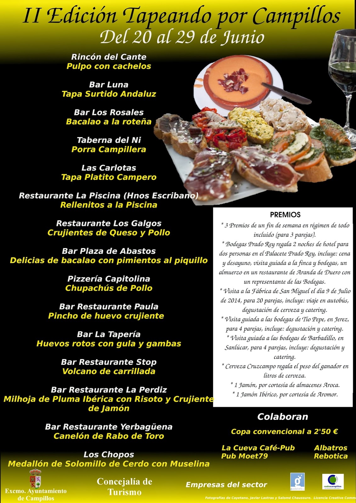 La Concejalía de Turismo del Ayuntamiento de Campillos organiza la ‘II Edición de Tapeando por Campillos’, una iniciativa con la que se pretende impulsar el turismo gastronómico y ensalzar la cocina típica de la localidad. Así, 15 bares del municipio se han sumado a esta segunda edición que se desarrollará entre el 20 y el 29 de junio. Cada uno de los establecimientos participantes ofrecerá al público una tapa especial, al precio de un euro, y una segunda tapa alternativa durante los diez días que estará vigente esta iniciativa. El objetivo es que todos aquellos que quieran degustar lo mejor de la cocina de estos 15 bares, dispongan de un margen de tiempo suficiente para poder hacerlo.