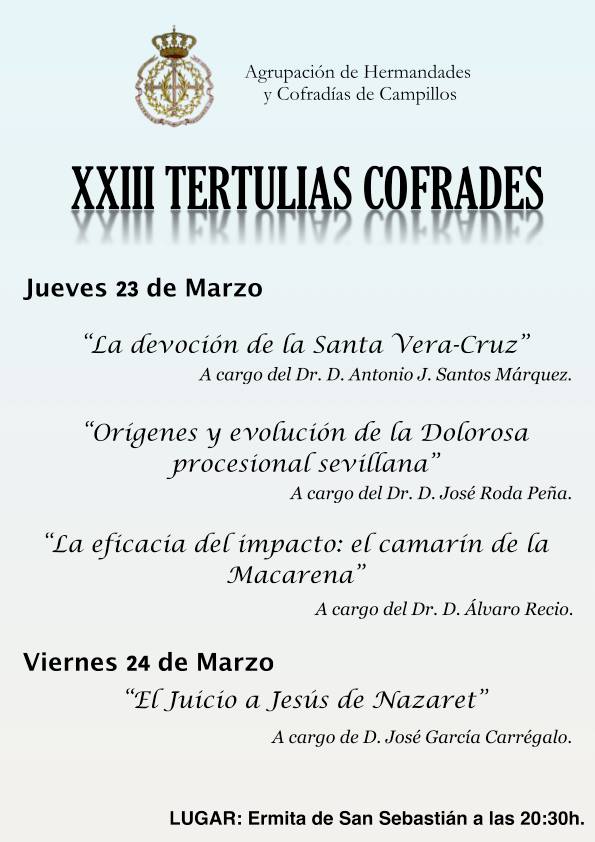 La Agrupación de Cofradías de Semana Santa de Campillos organiza durante el jueves 23 y viernes 24 de marzo las Vigésimo terceras tertulias cofrades.