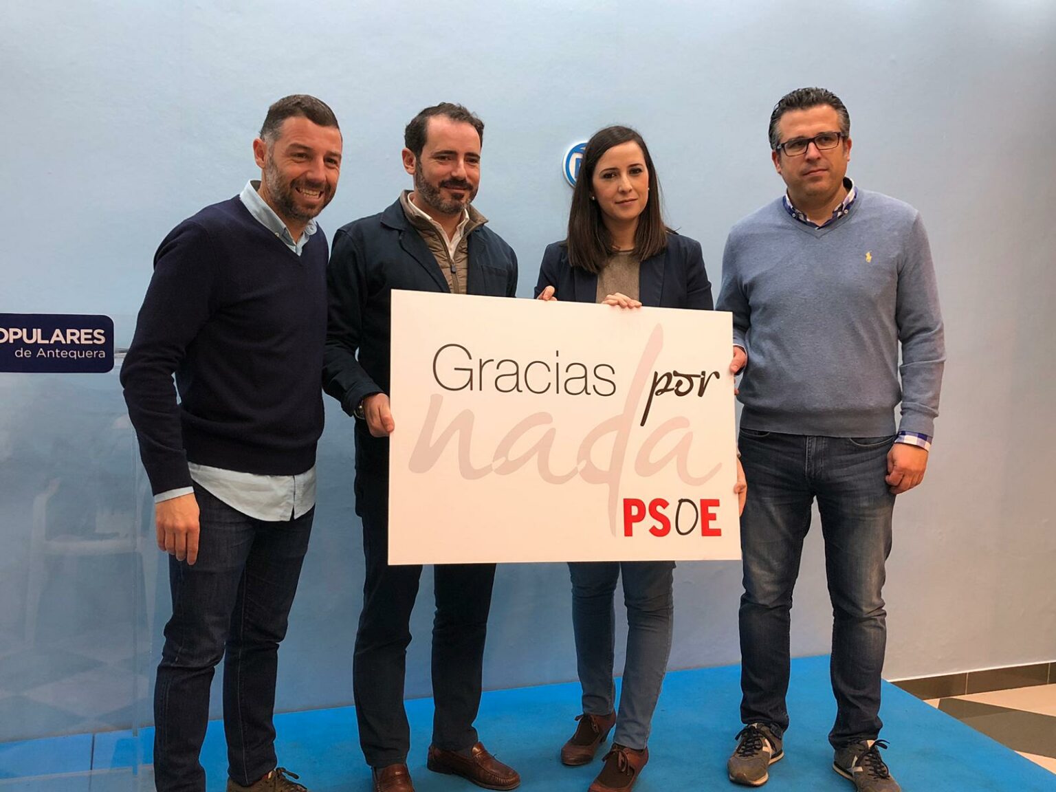 Ante la inminente visita de la ya ex presidenta del gobierno andaluz Susana Díaz a Antequera, el PP se ha reunido esta mañana en su sede del callejón Martínez para lanzarle a Díaz un mensaje: gracias por nada.
