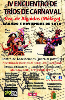 La Asociación Cultural Amigos del Carnaval: CarnavAlgaidas ha organizado para el próximo cinco de noviembre el IV Encuentro de Tríos de Carnaval.