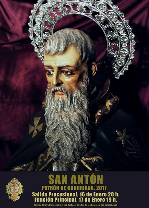 Procesión: Lunes 16 de Enero de 2017: 20.00 horas. / Eucaristía: Martes 17 de Enero de 2017: 19.00 horas. Churriana, Málaga