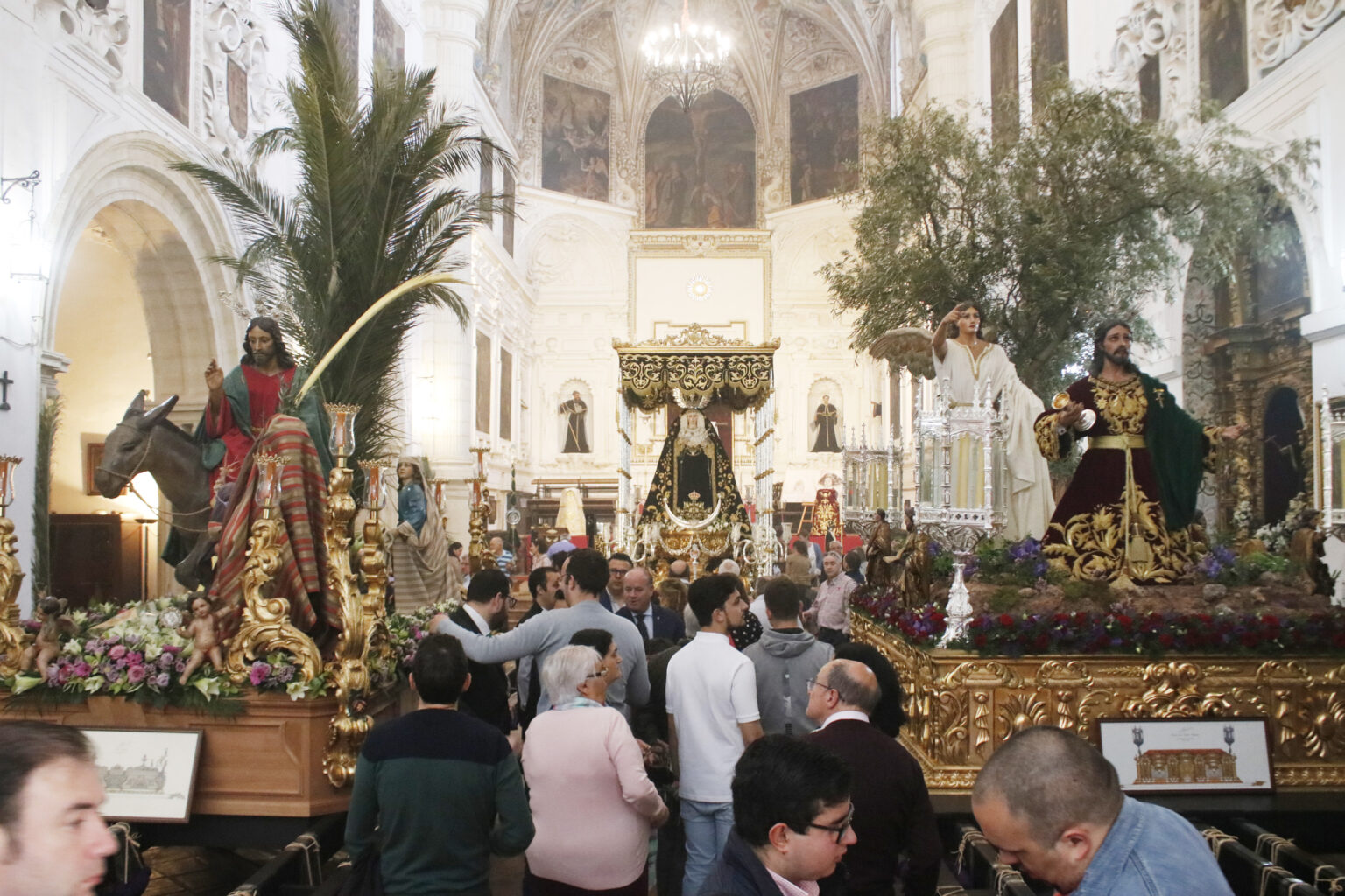 Durante la jornada los devotos aprovechan para visitar a Nuestro Señor a su Entrada en Jerusalén, Jesús Orando en el Huerto y María Santísima de la Consolación y Esperanza, mientras los cofrades se afanan en explicar la novedades con las que este año las Sagradas Imágenes pasearán por las calles de Antequera.