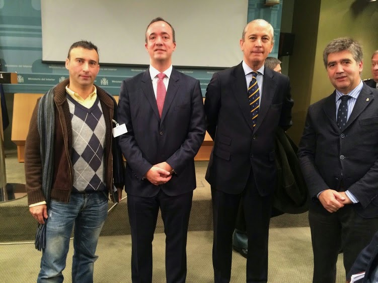 FOTO: El presidente de la Confederación LGBT Española COLEGAS (Paco Ramírez), junto al Secretario de Estado de Seguridad (Francisco Martínez), el Director General de la Guardia Civl (Arsenio Fernández de Mesa) y el Director General de la Policía Nacional (Ignacio Cosidó) durante la presentación del Protocolo de Actuación ante Delitos de Odio