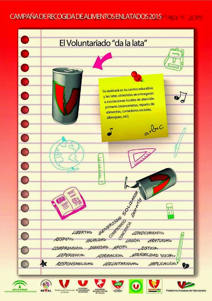 «El Voluntariado da la lata», bajo este llamativo lema, las Plataformas del Voluntariado de toda Andalucía van a realizar campañas de recogida de alimentos en centros educativos de Andalucía entre los meses de marzo a junio de 2015.