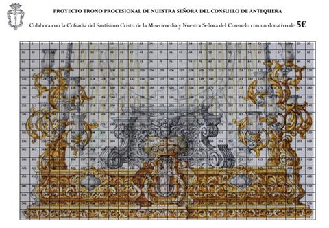 La Cofradía del Santísimo Cristo de la Misericordia y Nuestra Señora del Consuelo de Antequera informa que ya tiene disponible la cuadrícula con el frontal y lateral del que será el trono de su Sagrada Titular, la Virgen del Consuelo.